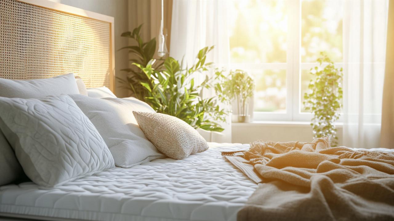 Une bonne ventilation constitue un critère essentiel pour maintenir un environnement de couchage sain et confortable. Un matelas respirant évite l'accumulation d'humidité et limite la prolifération des acariens, facteurs importants pour les personnes sensibles ou allergiques. Les matelas à ressorts ensachés excellent naturellement dans ce domaine grâce à leur structure aérée. Concernant les garnissages, chaque matériau présente des caractéristiques spécifiques : le coton offre une bonne absorption de l'humidité, la laine régule naturellement la température, tandis que les fibres synthétiques apportent un bon maintien à moindre coût. Méfiez-vous cependant des traitements chimiques anti-acariens ou antibactériens qui peuvent contenir des substances nocives pour la santé.